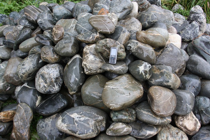 • Kamenclub.ru: Валунчик Паутинник фр.100-300 мм  купить в Смоленске крупный природный камень галечник темно-серый с прожилками белый черный речной валунчик 5000 руб/т   фото КАМЕНЬ КЛУБ