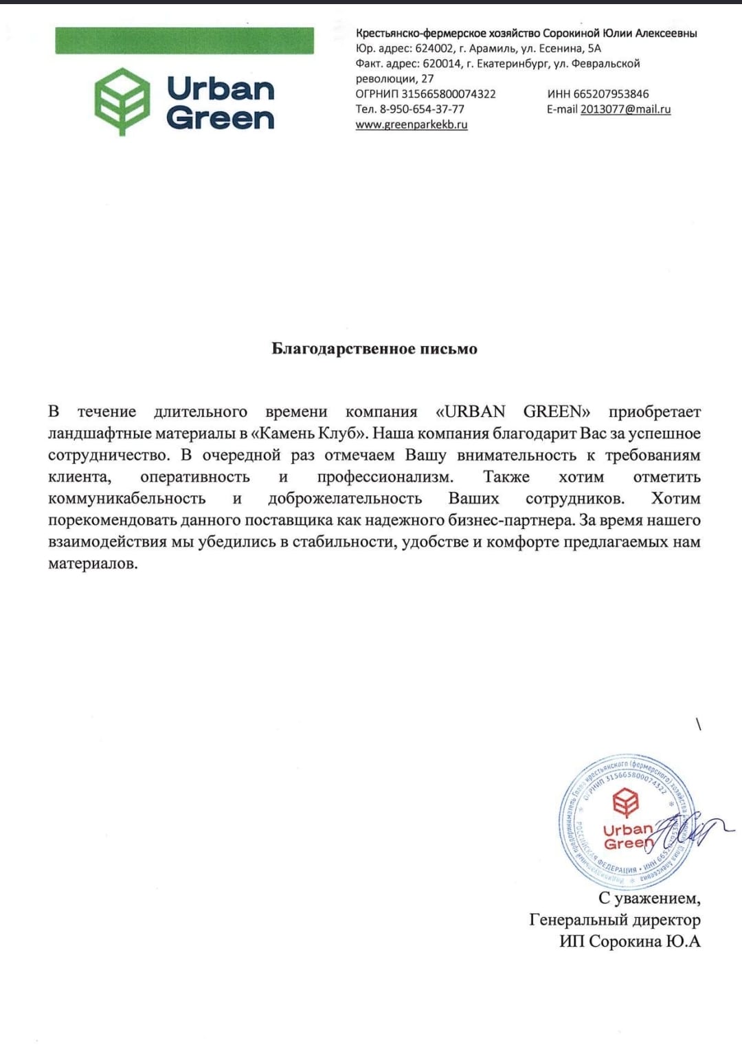 • Рекомендательные письма клиентов Камень Клуб
